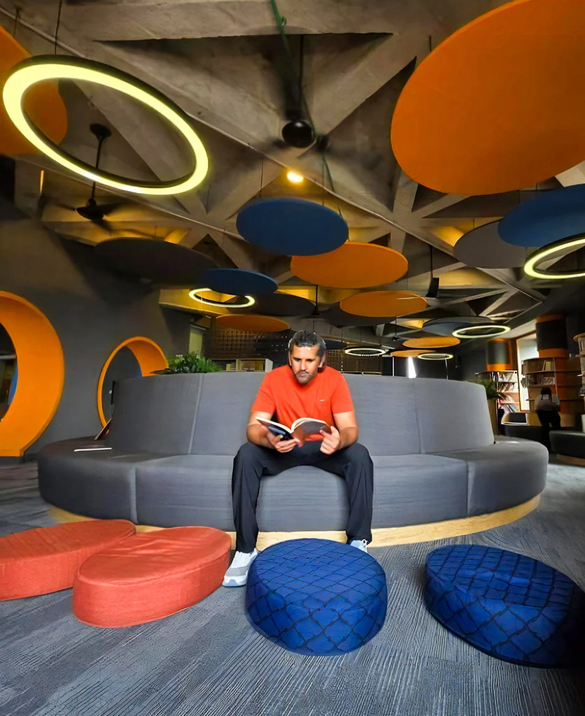 Modern design elements are seamlessly integrated throughout the space from smart shelving solutions to contemporary lighting and flexible seating. Each detail contributes to a calm, purpose-built ambiance where students and educators can connect with knowledge in comfort and style.